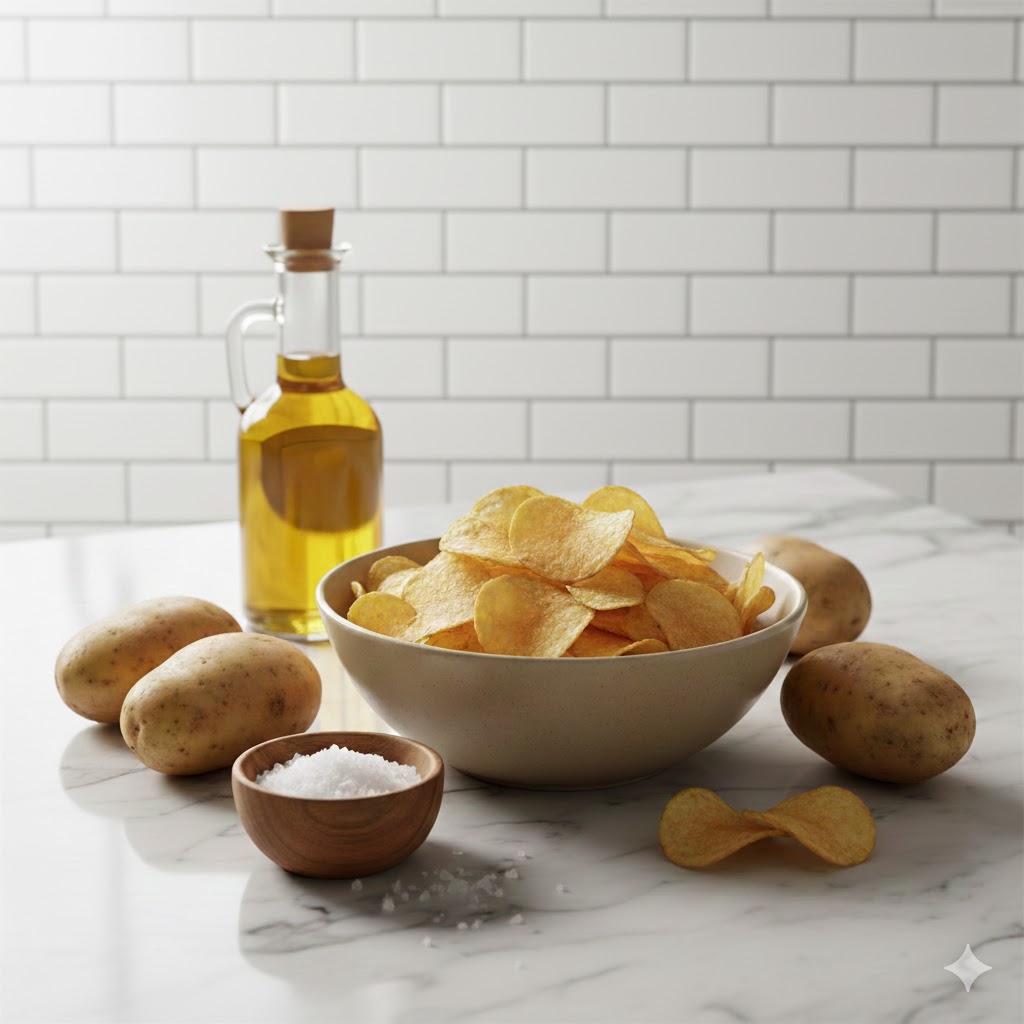 Una combinación sencilla y honesta, sin ingredientes innecesarios, que nos permite ofrecer el resultado de siempre: patatas crujientes, sabrosas y de máxima calidad.